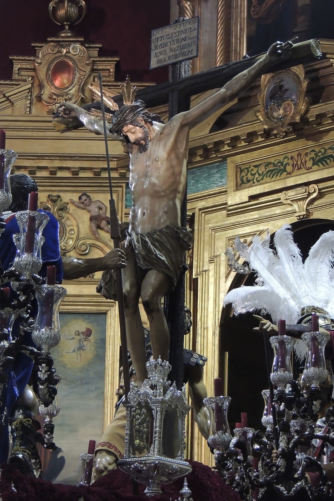 A primera hora de la tarde del Lunes Santo estaba el tiempo lluvioso y como las primeras cofradías no salieron, me trasladé a la Parroquia de Nuestra Señora de los Dolores, en el barrio del Cerro, para ver los pasos de la Hermandad.